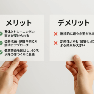 効果としては、姿勢改善・痛みの軽減・疲れにくい体づくり・柔軟性や体幹の強化などが期待できます。