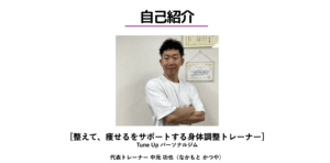 【整体×トレーニング!運動するだけじゃない整えるジム】身体改善専門|Tune Up パーソナルジム(チューンアップ)天満橋・谷町四丁目:中元功也
